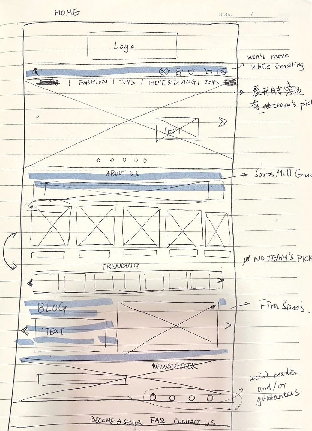 The paper wireframe provided us with an opportunity to explore our ideas further. We restructured the current homepage layout, with a focus on establishing brand authenticity, enhancing the clarity of the browsing sequence, and crafting compelling storytelling elements for our artists.