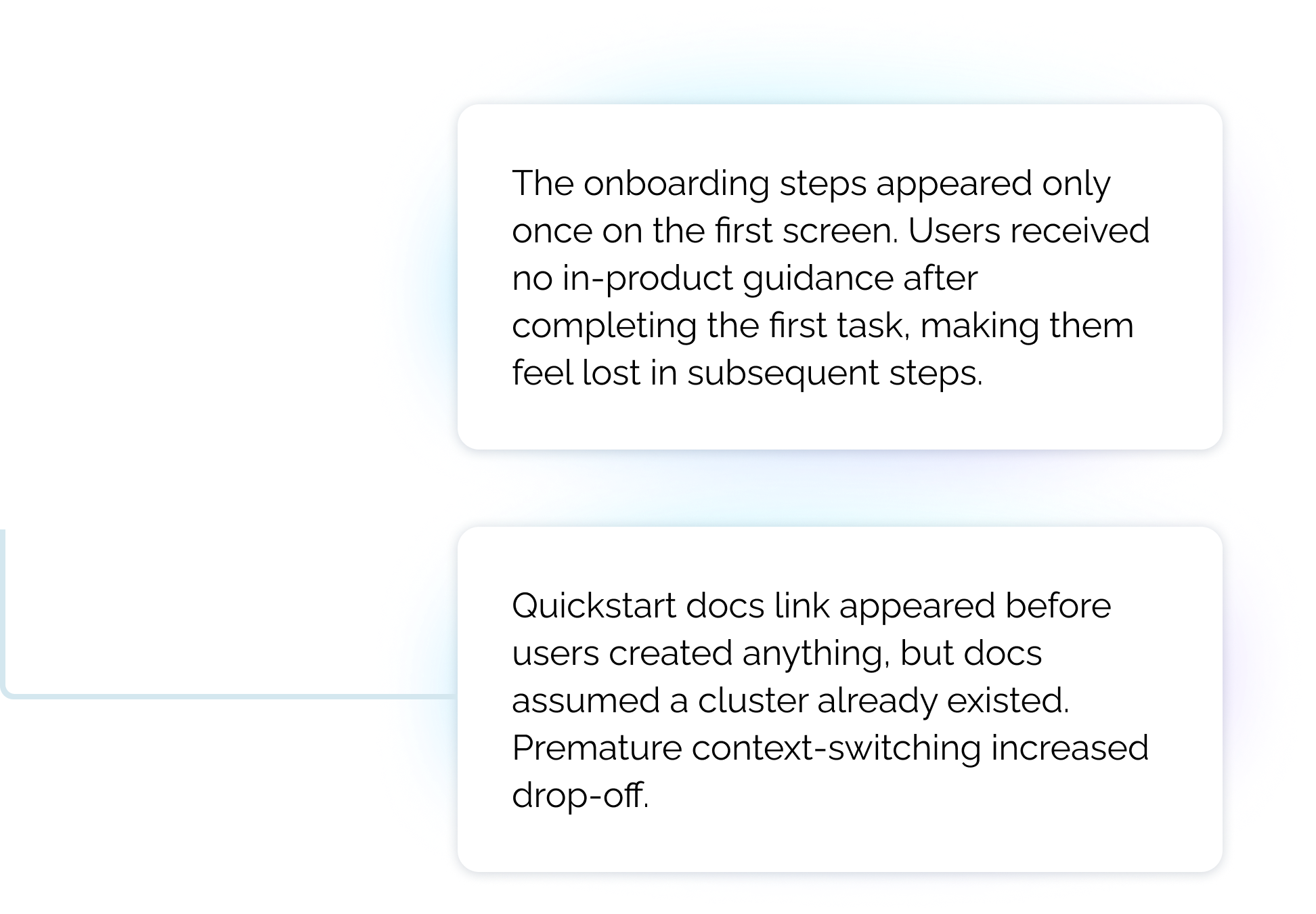 The biggest lesson from this project: context matters more than content. Moving the documentation link didn't require new copy or design, just better timing. This taught me to look for leverage points in the user journey where small changes create outsized impact, rather than assuming every problem needs a big solution.